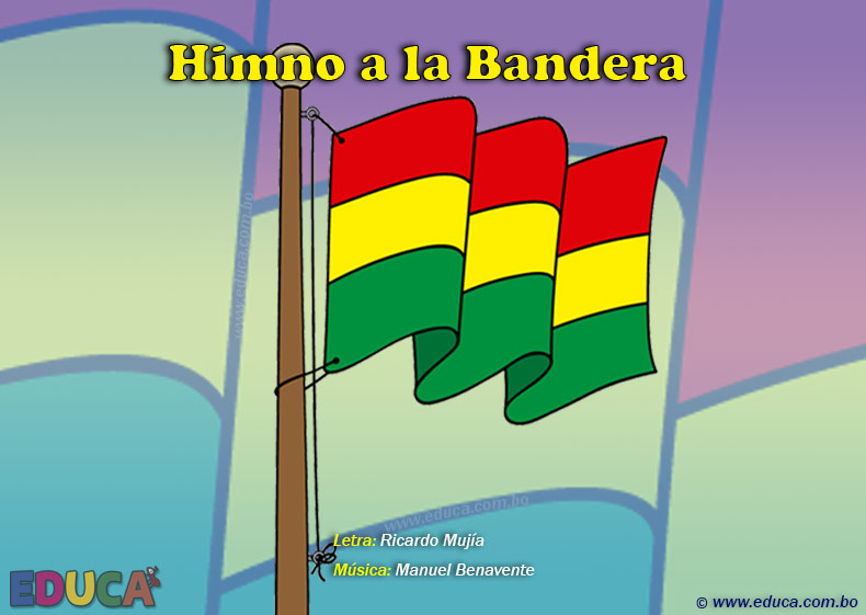 Nuestro himno a la bandera está compuesto de 6 estrofas y tiene como autores: en la letra al Dr. Ricardo Mujía y en música a Dn. Manuel Benavente.
