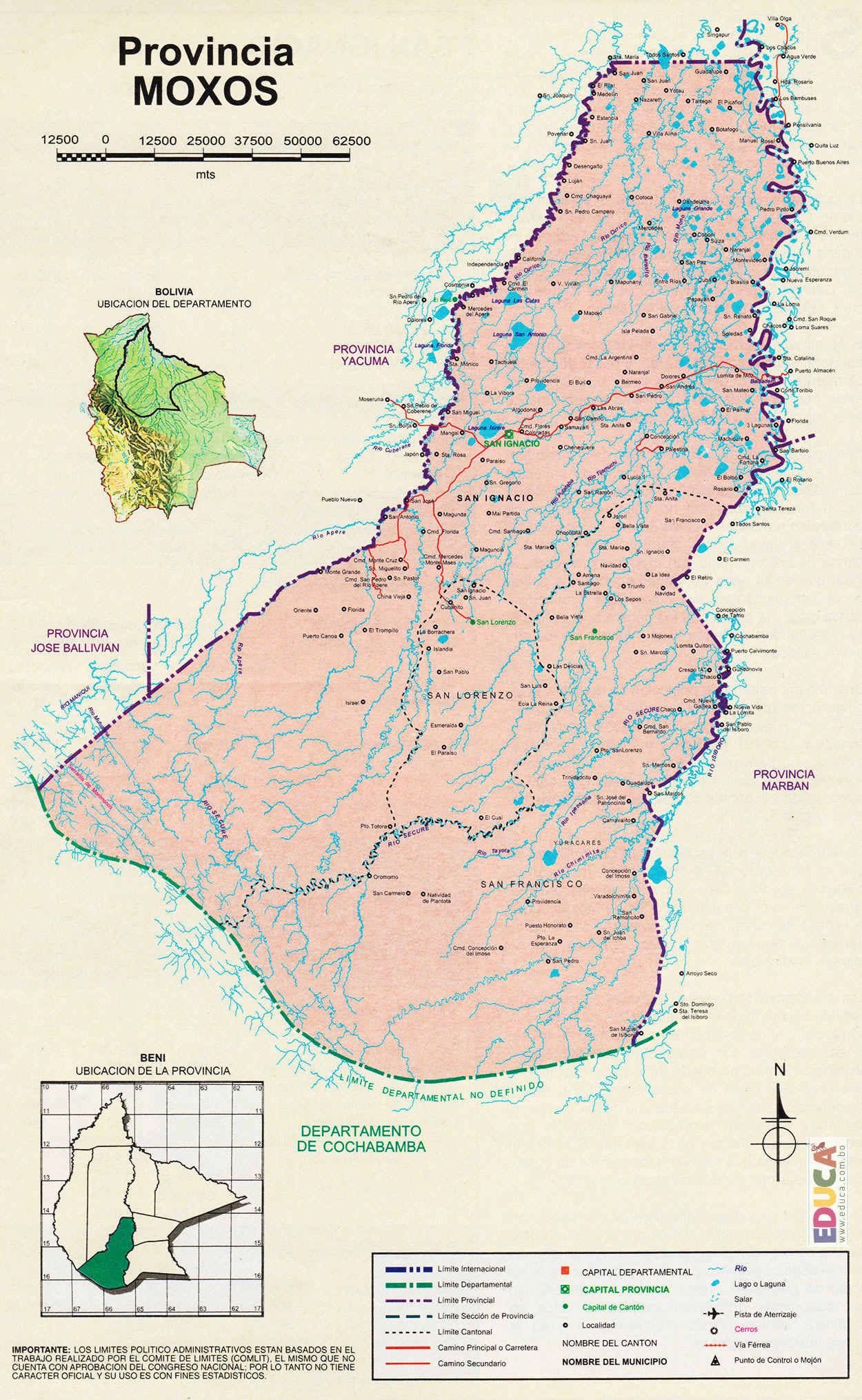 La provincia Moxos del Departamento del Beni, República de Bolivia, tiene una extensión de 33.316 Km2 de superficie.